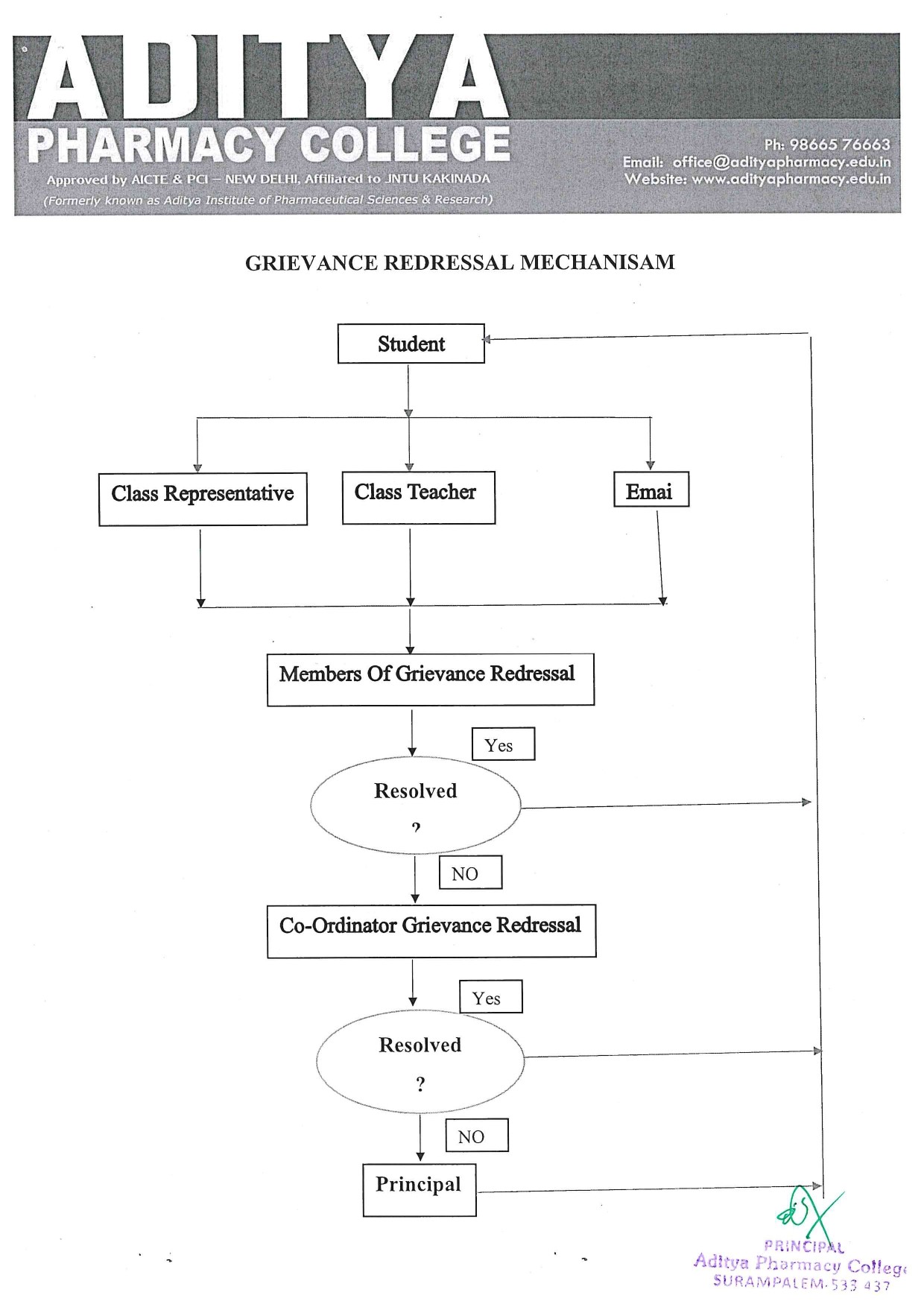 Objectives:As per the instructions of UGC, AICTE and JNTUK, the Official Grievance Redressal Committee has been established in order to deal with individual complaints regarding students and to ensure amicable resolution of complaints within the prescribed period. The online complaints handling mechanism can receive and resolve complaints online. URL of the online complaints handling portal to ensure publicity/awareness of the establishment of the complaints handling mechanism. Teachers from all departments, members of this committee, meet regularly and provide solutions to students' problems related to female students. The committee invites employees to submit their suggestions to improve the work environment and solve problems, if any. Any specific issues related to sexual harassment/grievances are dealt with through professional advice, and parents are called and counselled in a confidential manner.